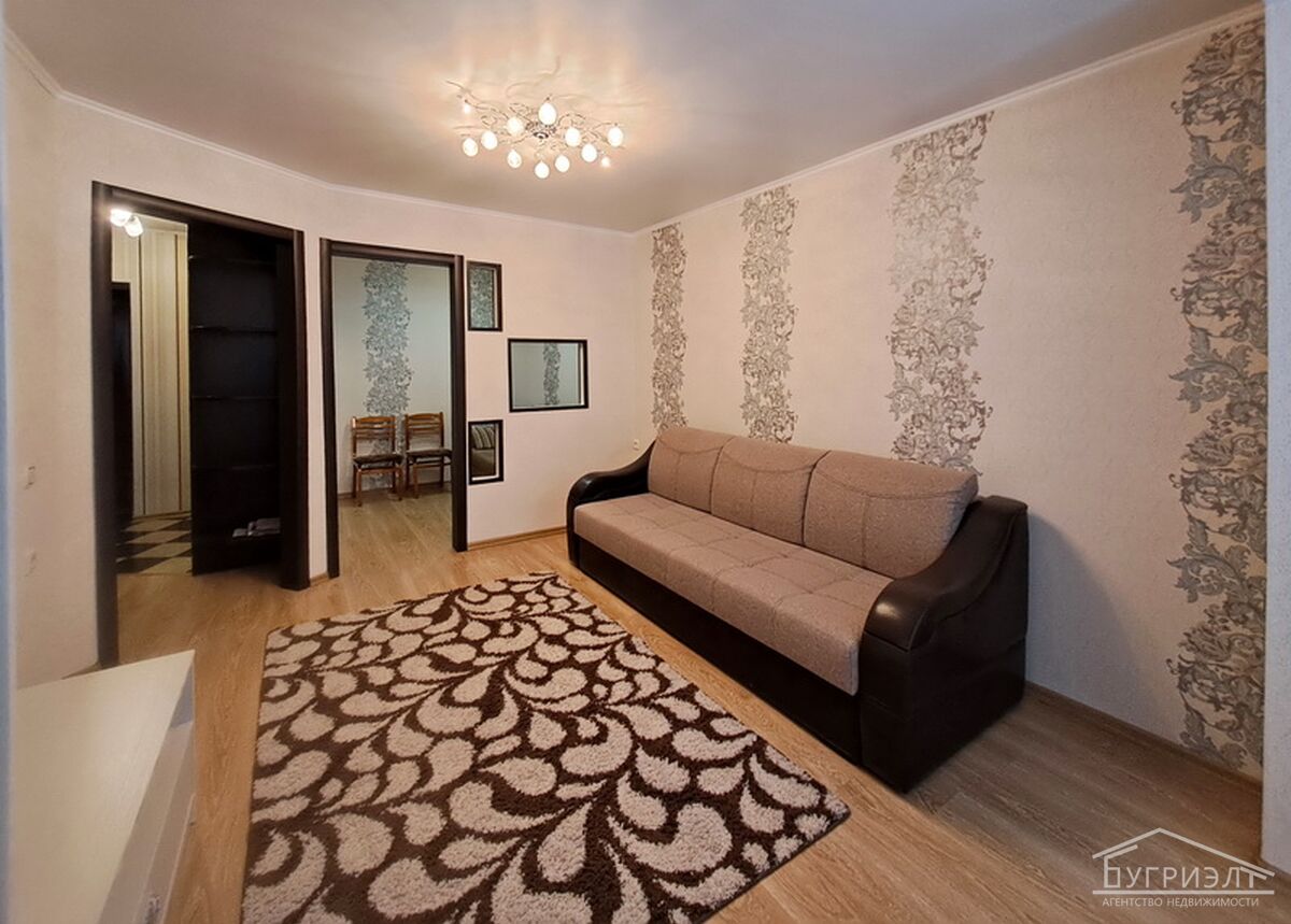 Просторная однокомнатная квартира в новом районе города Пинска, микрорайон Радужный ул. Солнечная. Квартира расположена на 5-м этаже кирпичного 5-ти этажного дома, 2010 года постройки. Общая площадь квартиры с лоджией составляет - 42,8 м2, жилая площадь - 21,5 м2, кухня - 9,1 м2.
