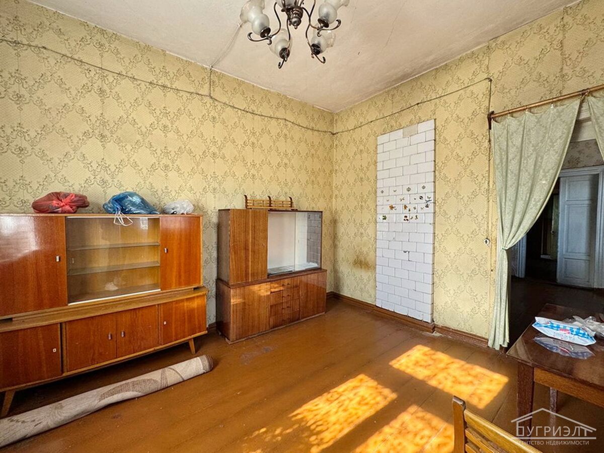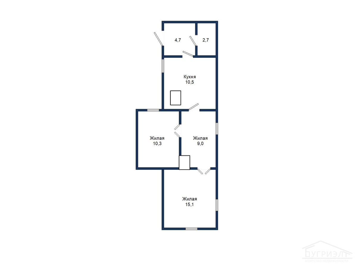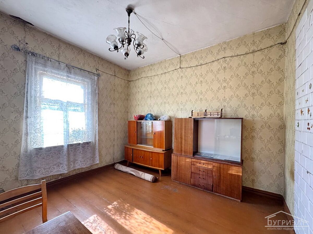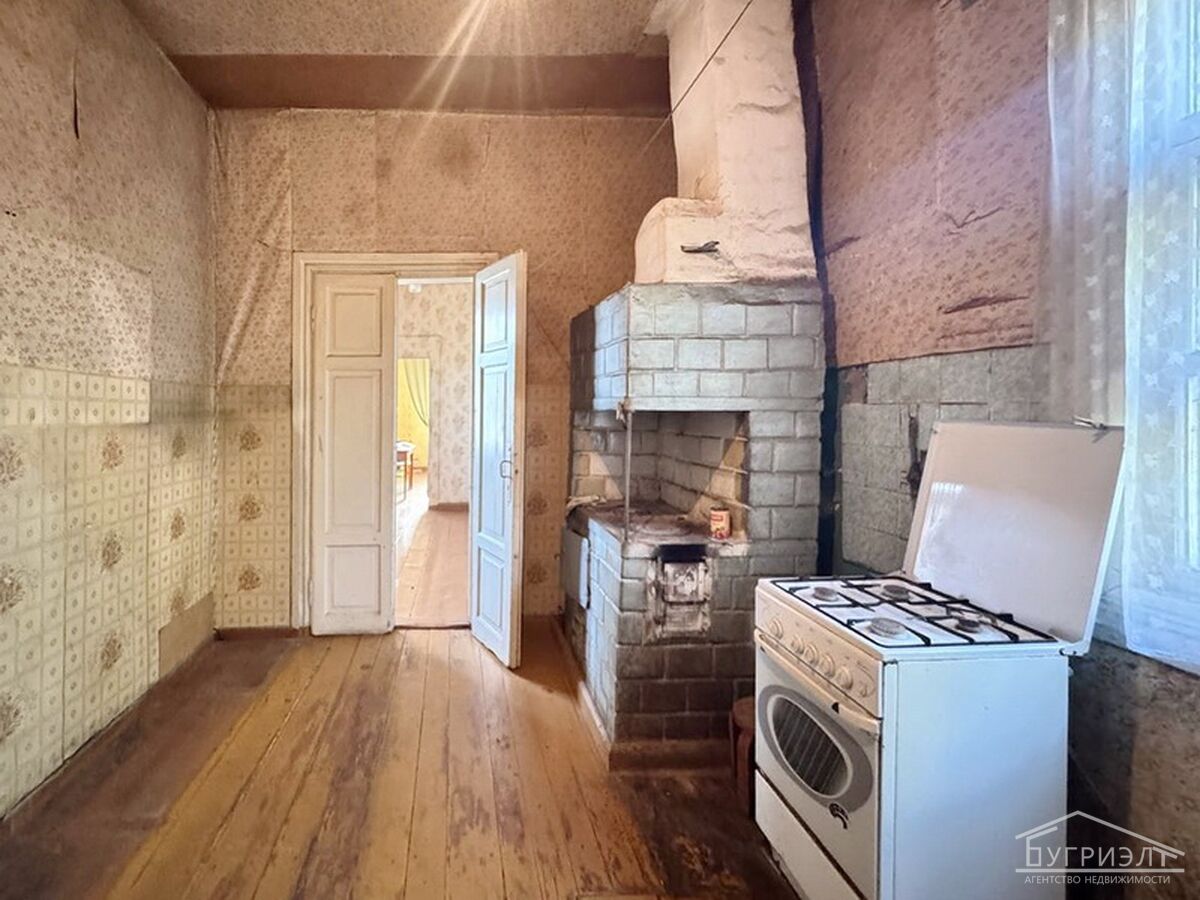 Трехкомнатная квартира в блокированном одноэтажном жилом доме в г. Пинск, ул. Зои Космодемьянской. Стены - брус, кровля - жесть. Общая площадь квартиры составляет 52,3 м2, жилая площадь - 34,4 м2, кухня - 10,5 м2.